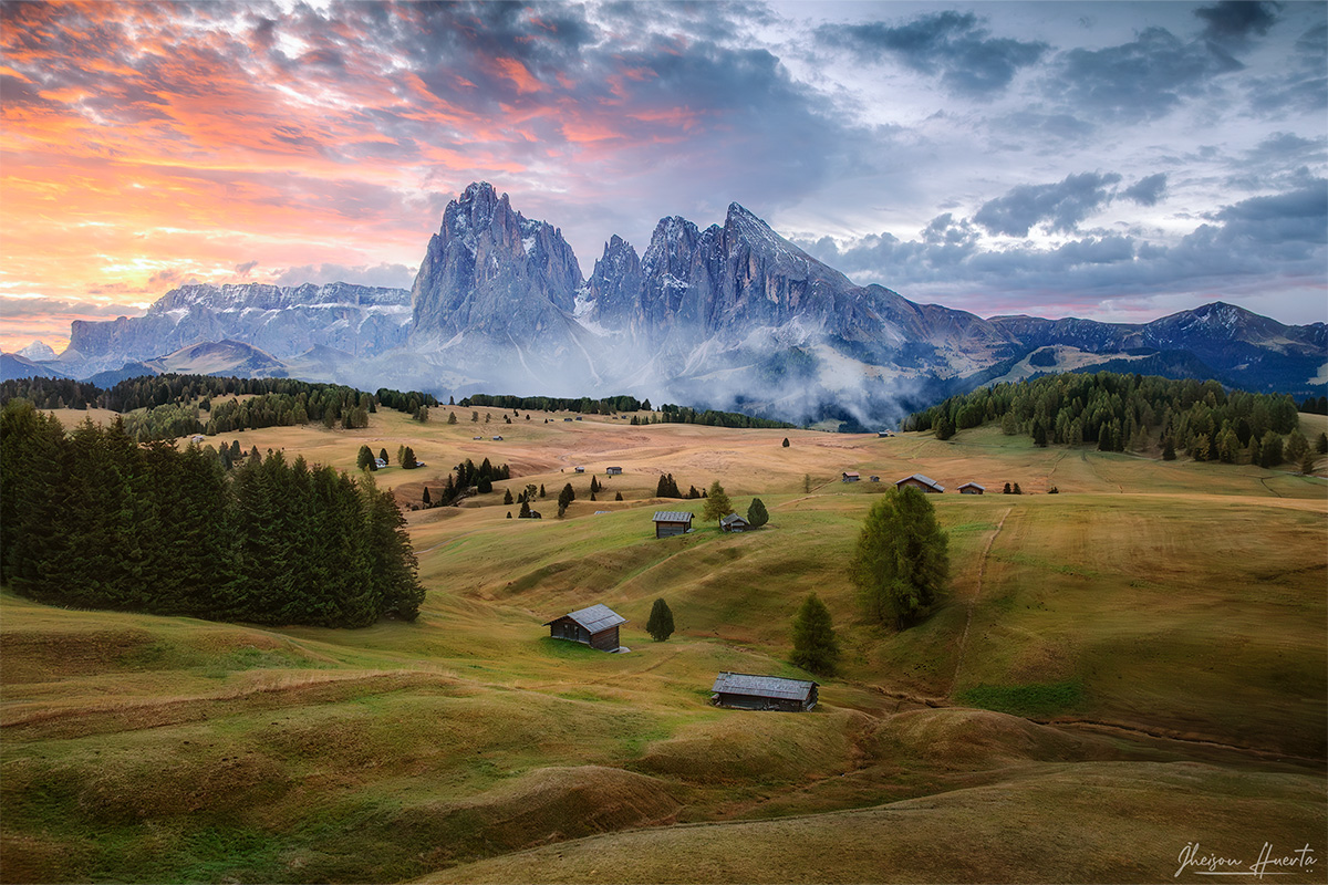 Partiremos muy temprano en la mañana para fotografiar uno de los miradores panorámicos en Alpe di Siusi. Tendremos un almuerzo alpino clásico en una trattoria local y alistarnos para fotografiar el atardecer en otra locación top de las Dolomitas: el Lago Carezza y sus aguas que cambian de tonalidades entre turquesas y verdes.