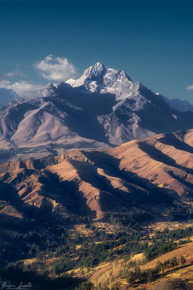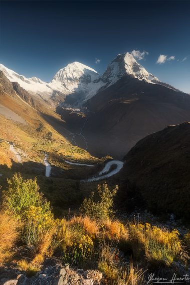 surrounded by quenual trees. At sunset we will go up to one of the viewpoints to photograph the highest mountains of Peru during the golden hour and blue hour. Among the mountains that stand out are: Huascaran (6768 mts.), Huandoy (6395 mts.), Chopicalqui (6354 mts.), Chacraraju (6110 mts.), among others.